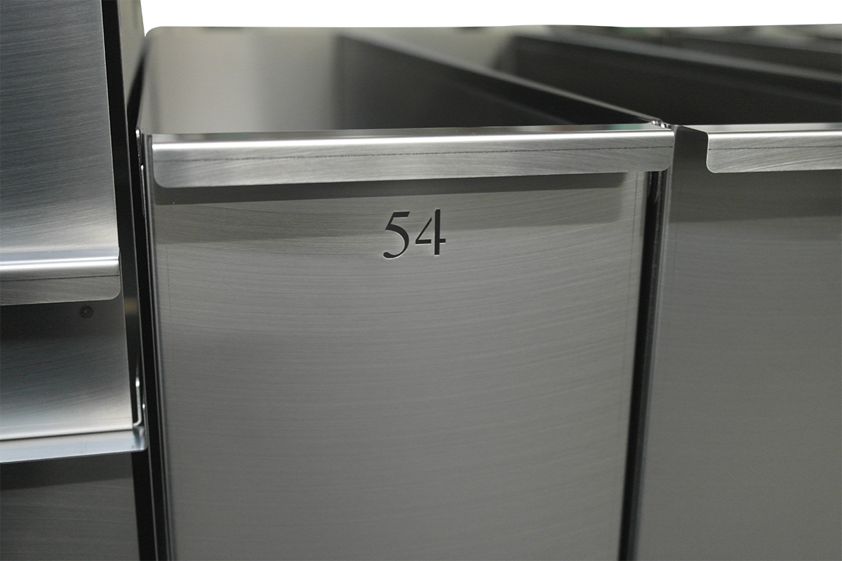Zur leichteren Identifizierung im Freezer können Sie diese Schrankkästen auch in das optionale Nummerierungssystem einbeziehen. HIerzu wird die gewünschte alphanumerische Beschriftung in der Frontseite des Schrankkastens ausgelasert.